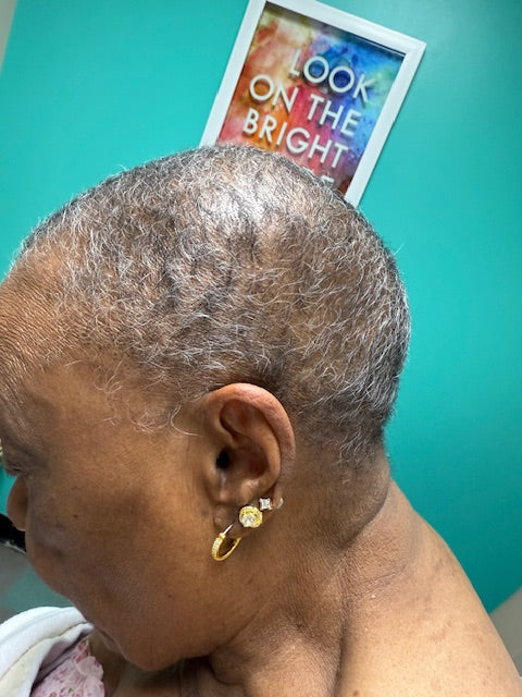 Our hair serum helps clients regrow hair after chemotherapy and alopecia. See how new growth is returning after years of hair loss, bringing back not just hair, but confidence and joy. We believe in treating the condition and celebrating the journey, because inserting joy is part of healing.